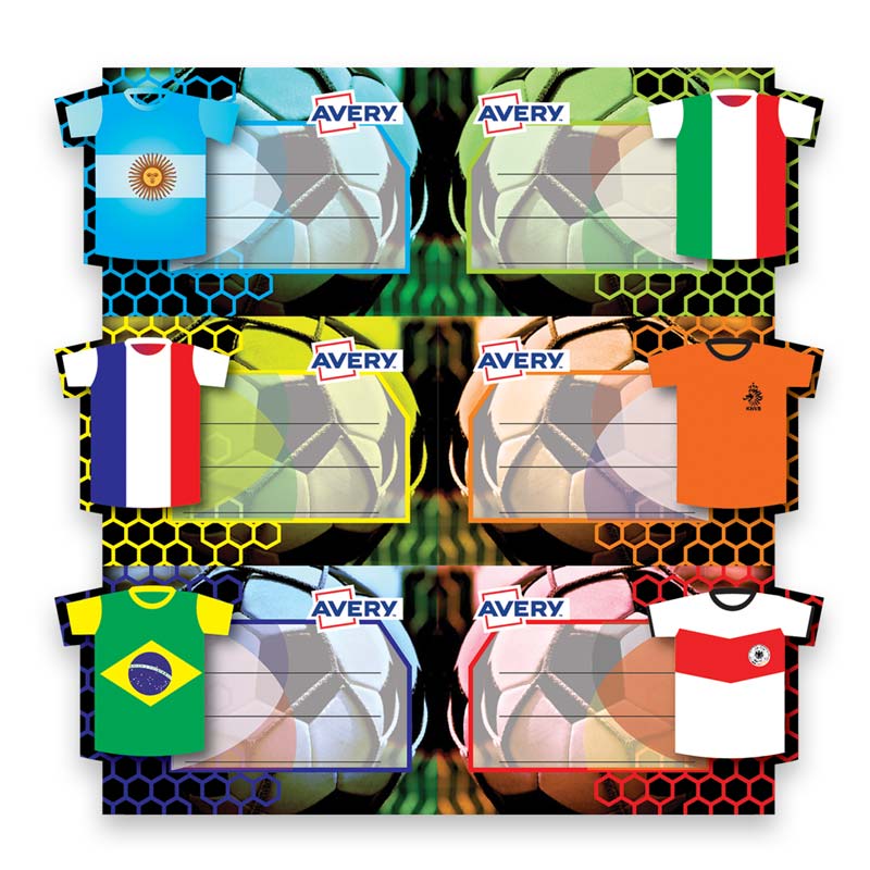 Etiquetas escolares con diseños y formas divertidas para identificar cuadernos, carpetas, libros y cajas escolares. Las etiquetas tienen tratamientos especiales como Hot Stamping, tintas flúo y brillito. Diseños exclusivos que arman kit con las carpetas y separadores escolares Avery!