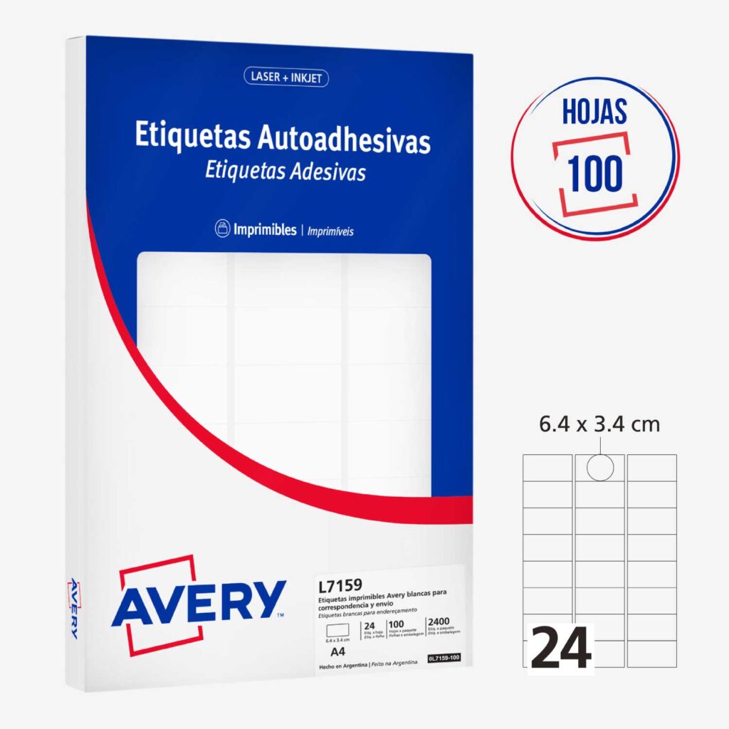 ETIQUETAS ADHESIVAS IMPRIMIBLES AVERY BLANCAS 6.4 x 3.4 cm – 2400 Unds