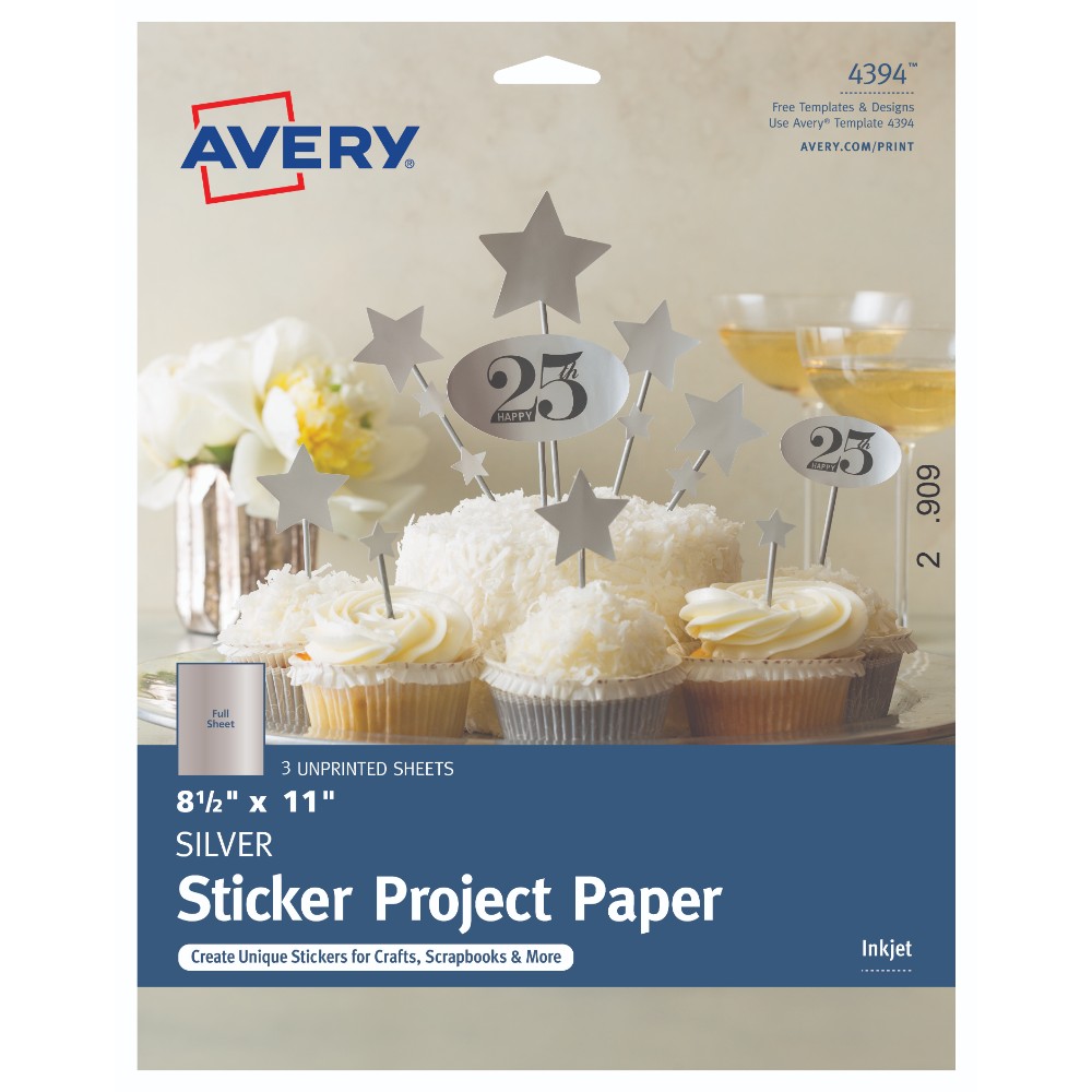 Etiquetas Imprimibles Avery Plateadas de Hoja Entera. Permiten la impresión hasta el borde. Este producto completa una línea de etiquetas y tarjetas para personalizar eventos y ocasiones especiales como cumpleaños, casamientos, aniversarios y todo tipo de reuniones, inclusive empresariales.