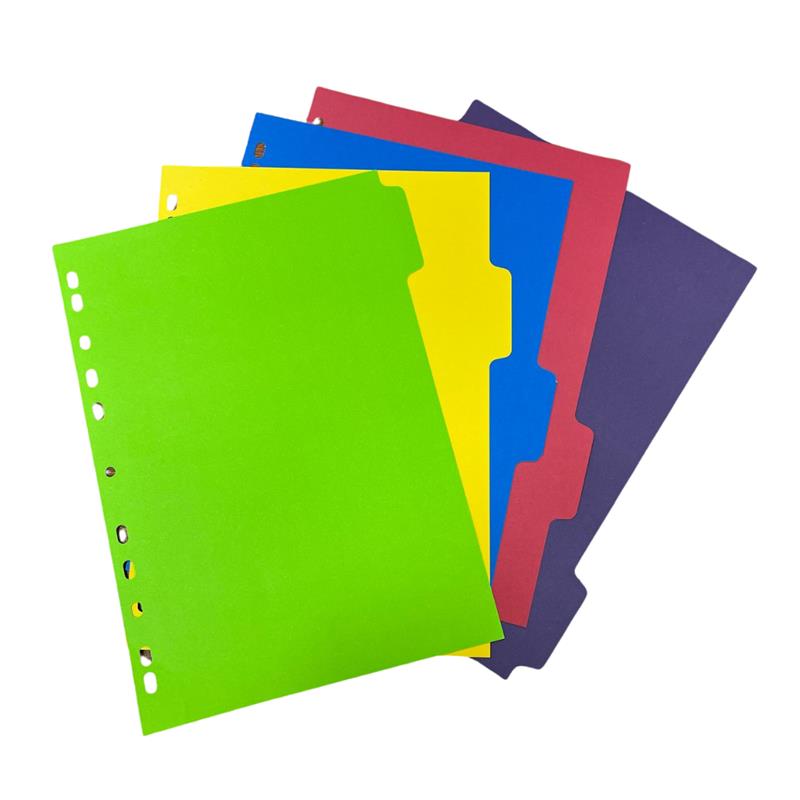 Separadores Avery de cartulina multicolor impresos color de ambos lados. Márgenes con perforación universal ideales para todo tipo de carpetas.
