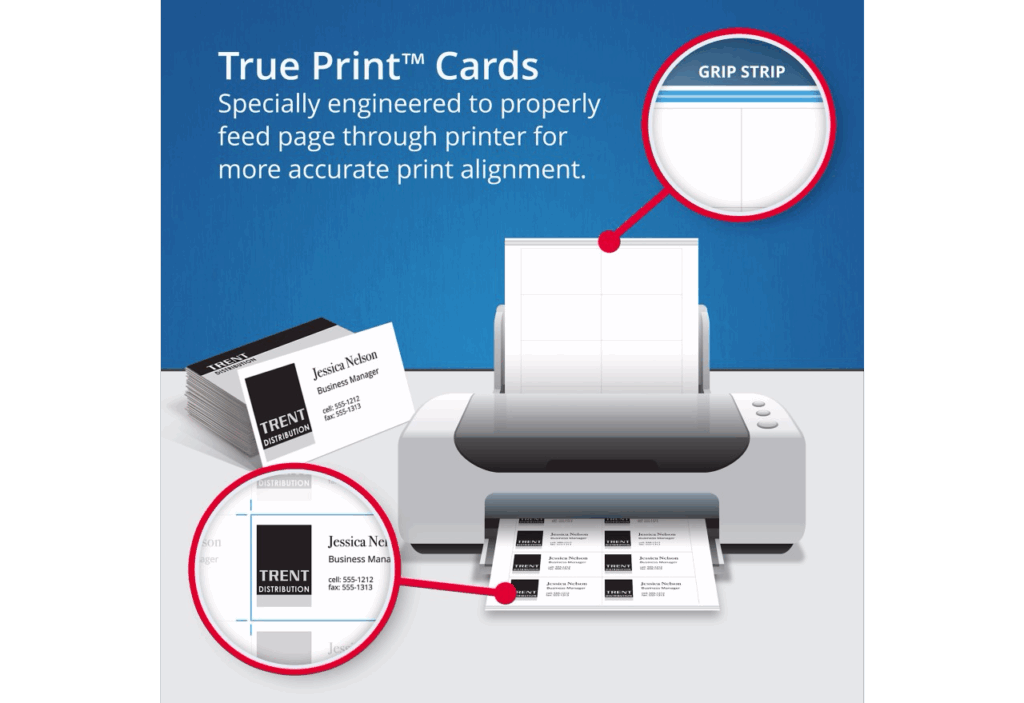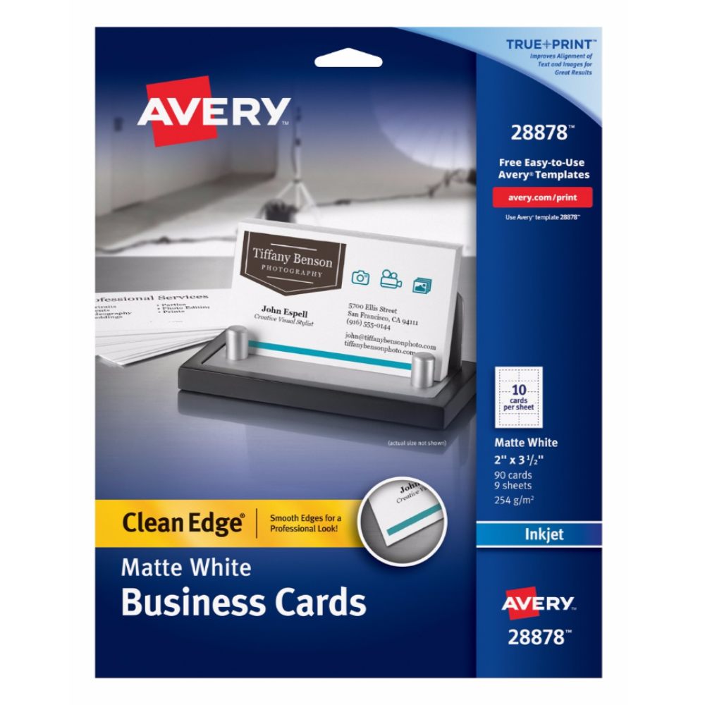 Tarjetas Personales Avery Blancas Mate. Con corte perfecto. Permiten impresión en ambos lados y hasta el borde. Cartulina blanca de alta calidad y superficie suave al tacto. Únicas con troquelado Manual. Imprimí la cantidad de tarjetas que necesites! Ideales para utilizar como tarjetas de presentación o de invitación.