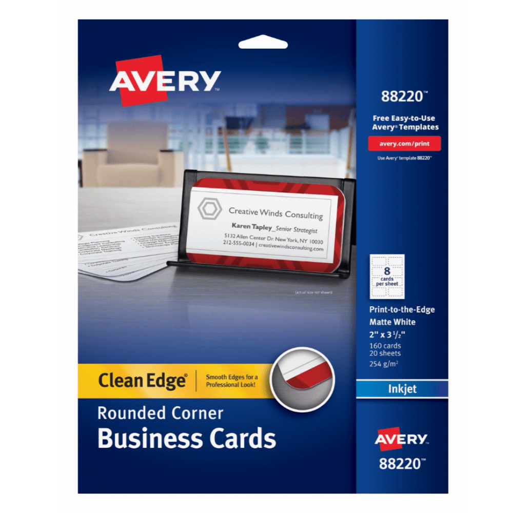 Tarjetas Personales Avery Blancas Mate. Con corte perfecto y bordes redondeados. Permiten impresión en ambos lados y hasta el borde. Cartulina blanca de alta calidad y superficie suave al tacto. Únicas con troquelado Manual. Ideales para utilizar como tarjetas de presentación o de invitación. Imprimí la cantidad de tarjetas que necesites!